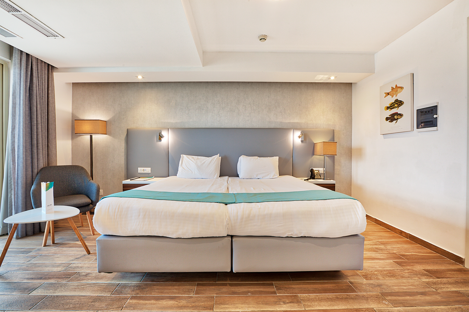 The accommodation comprises a selection of rooms, suites and studios. All are decorated in a contemporary style, and standard amenities include individually controlled central heating and air-conditioning, tea and coffee making amenities, a minibar and complimentary Wi-Fi. Luxury Suites are located on the highest floors and offer a large private terrace. Self-caterers may prefer to stay in a Studio Apartment or Junior Suite, both of which come with a kitchenette, as well as a private balcony or terrace.